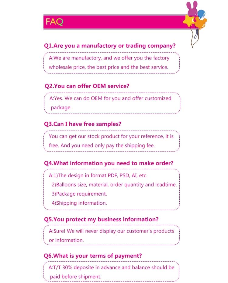 Usage | Balloon Product can be used for birthday party, baby shower, anniversary, wedding, give away gift and banquets. Foil balloon can be customize designed, according to the type of function and the need of customer. |